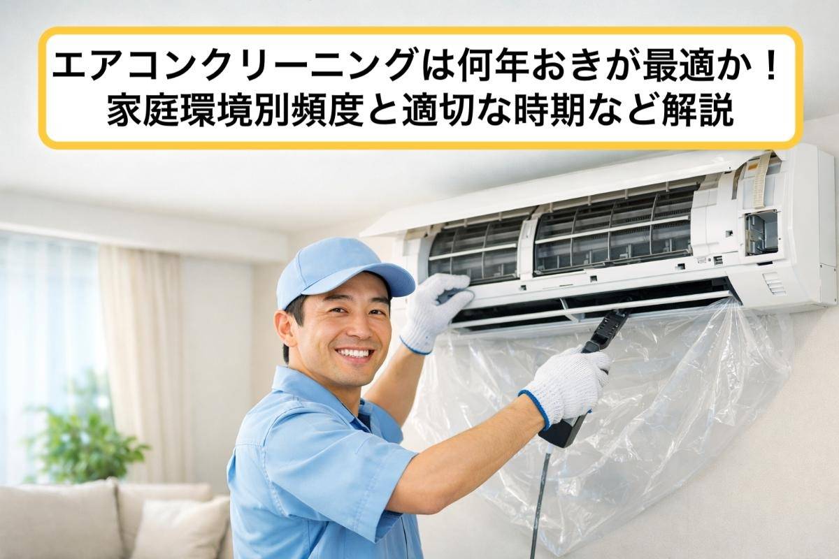 エアコンクリーニングの頻度は1〜2年に1回が目安となります。リビングなど使用頻度が高い部屋や、ペットや喫煙者がいる家庭では1年に1回、寝室やあまり使わない部屋は2〜3年に1回が推奨されます。また、お掃除機能付きエアコンでも2〜3年に1回は専門業者の分解洗浄が必要です。